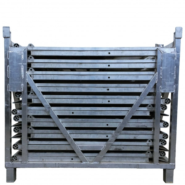 - Conditionnées par 10 dans des panières empilables qui peuvent être prises au chariot élevateur. Idéal pour le transport et le stockage pendant l’exploitation.