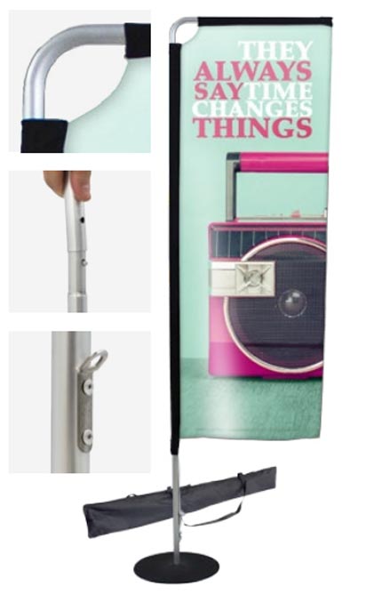 Ce porte-drapeau de forme carrée est également livré avec un sac de transport.