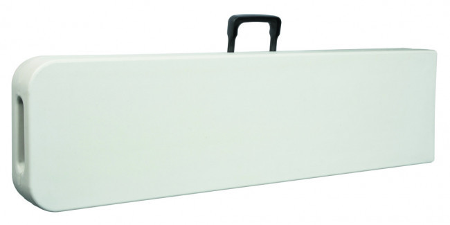 Ce banc pliable en polyéthylène supporte jusqu'à 500 kg et, une fois replié, ses pieds se rangent dans le plateau pour un stockage facile. Son poids est de 9 kg.