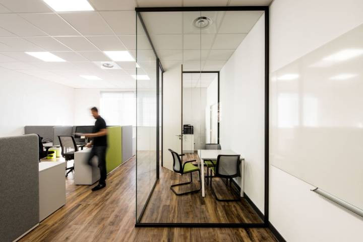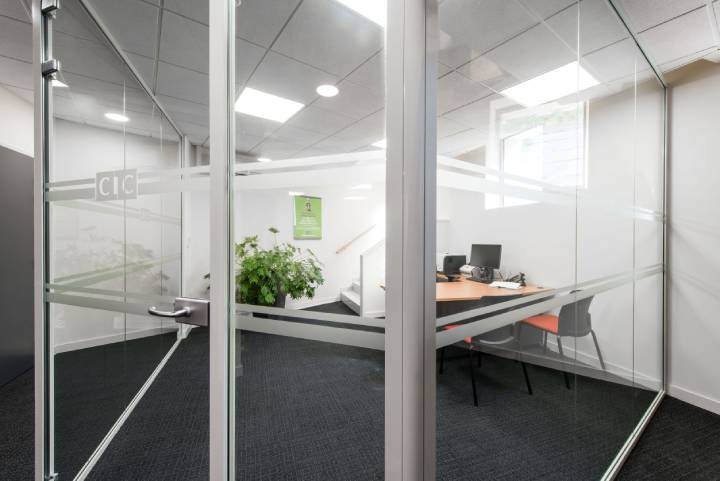 La cloison vitrée amovible s’adapte facilement à votre environnement grâce à sa parclose centrée et à sa grande liberté de pose, jusqu’à 3,20 m de hauteur.