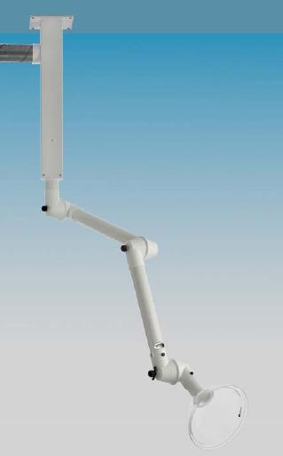 Pouvant être monté sur table, au mur ou sous le plafond, ce bras offre un débit d'aspiration jusqu'à 400 m3/h.