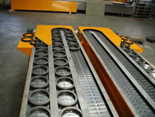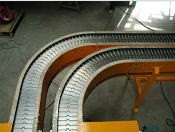 nous recherchons un convoyeur à chaine à palettes . avec 2 angles à 90°