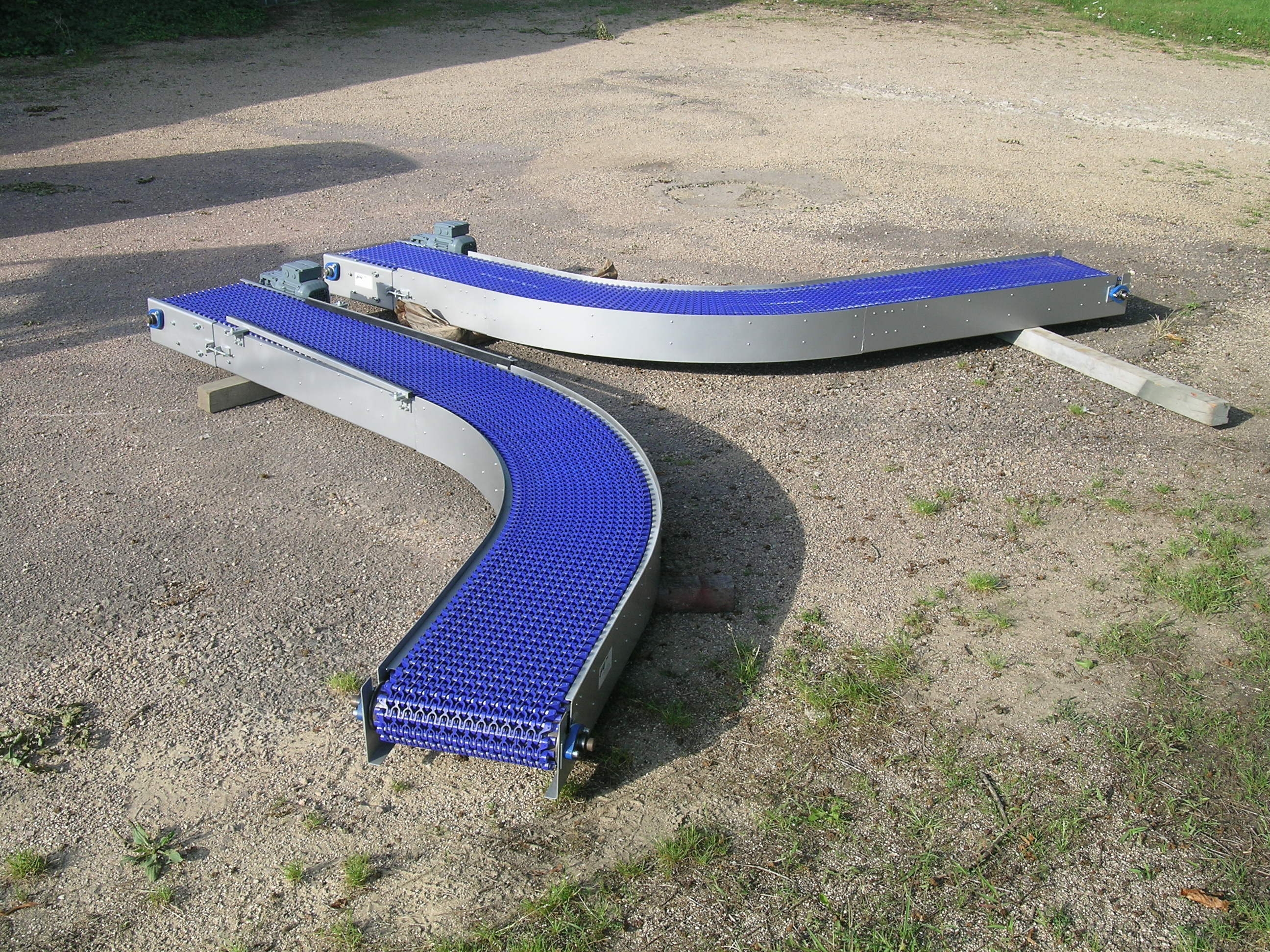 besoin d"un convoyeur à chaine plastique MOTORISE AVEC GUIDE LATERAUX CHARGES 1M20 X H 1M LARGEUR 110 VITESSE 15 M/