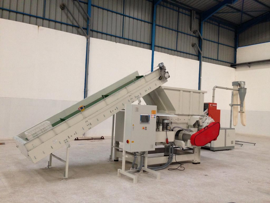 C’est un tapis transporteur adapté pour faciliter le convoyage de déchets :