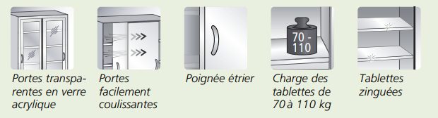 Adaptez la configuration à vos besoins avec tablettes réglables au pas de 15 mm.