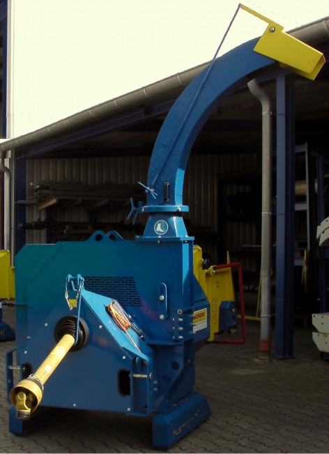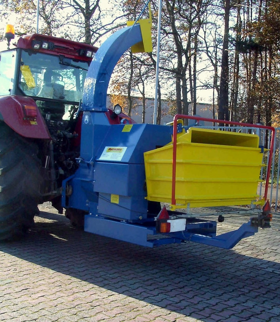La capacité de production d’environ 12 m3/H suivant les produits et les conditions de travail, elle produit une plaquette de 12 à 40 mm. Elle est entraînée par prise de force 1000T/min, la puissance minimum du tracteur doit être de 50 CV.