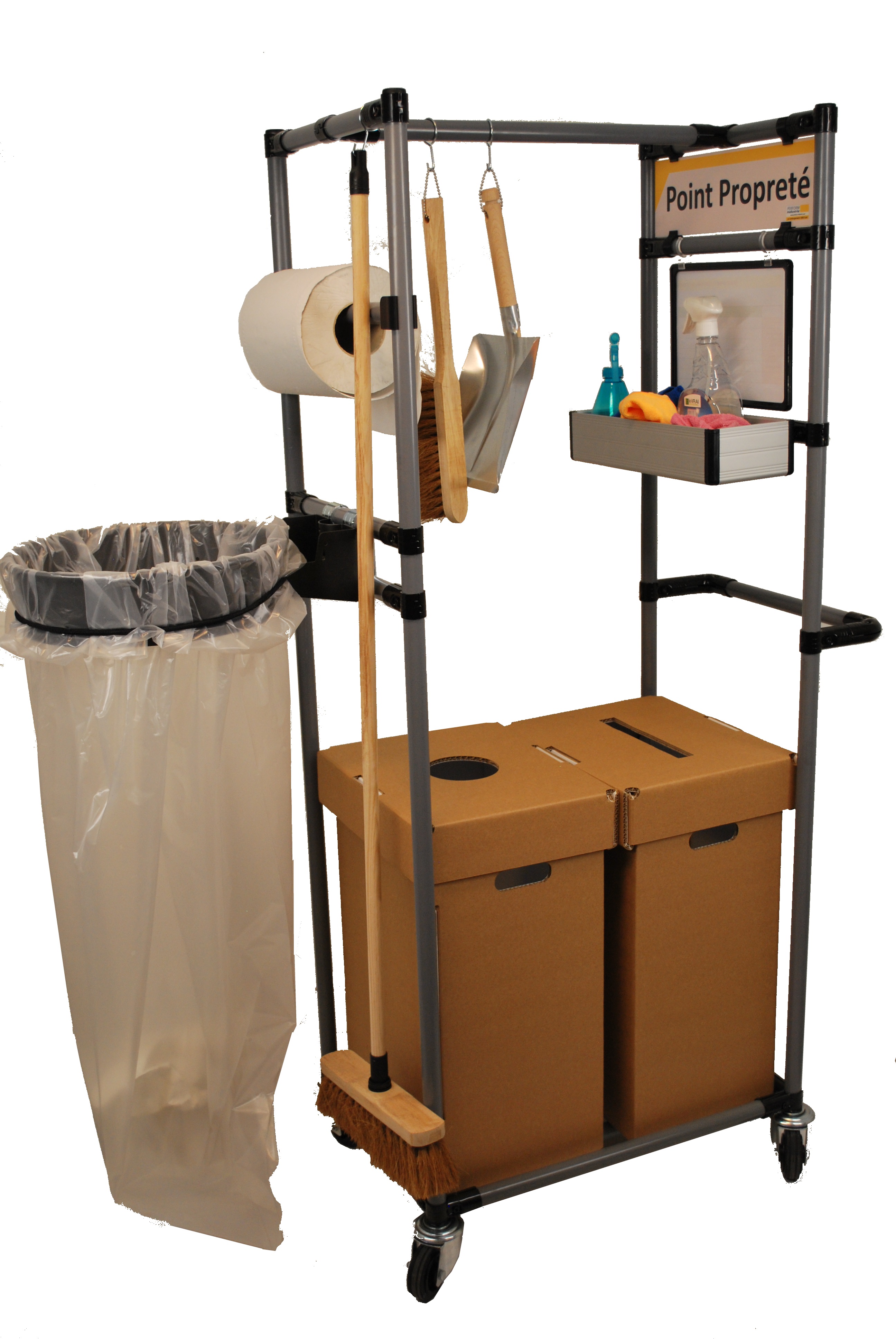- Produit livré monté avec les équipements : Balai - Pelle - Balayette – 2 Poubelles carton 50L