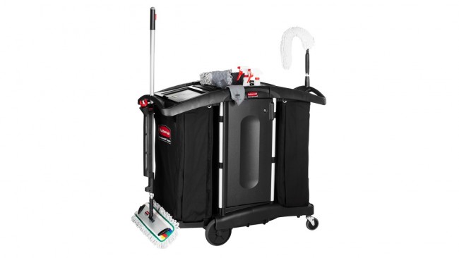Ce chariot d’entretien se distingue par son ergonomie, sa grande capacité de stockage et son faible encombrement.