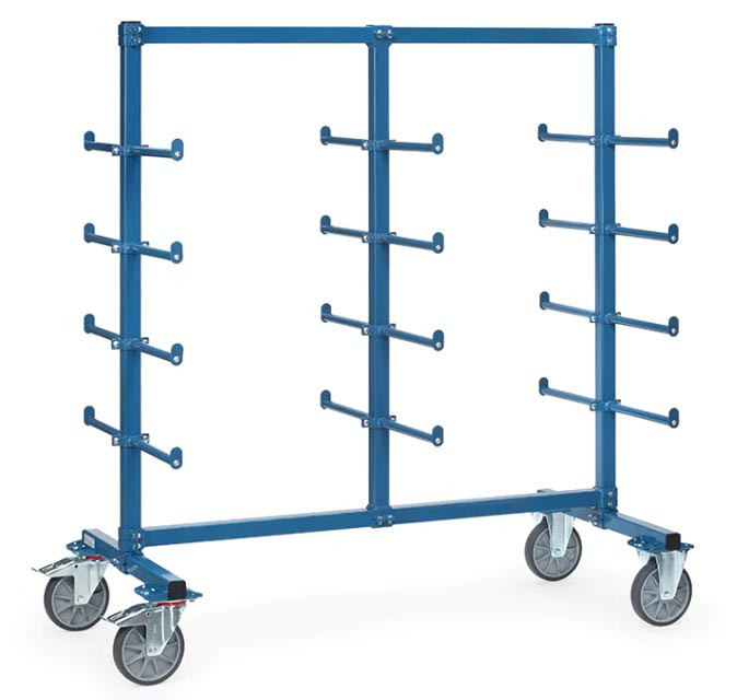 Chariot Cantilever 2 faces avec butée de sécurité - Avec barres de portée horizontales