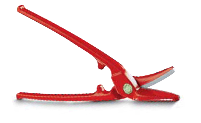 - Cisaille à tôle avec 2 lames étroites et déportées pour la découpe de feuillards suivant un tracé net et précis.