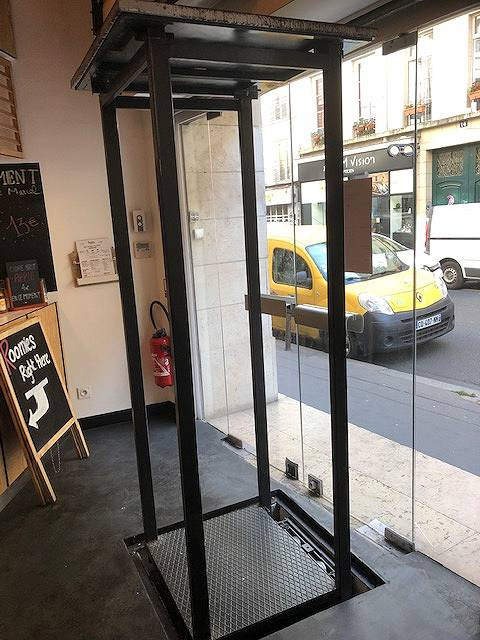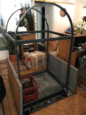 Ce monte-charge permet transporter facilement des charges lourdes entre deux niveaux.