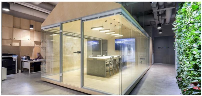 cloison acoustique de préference pour confidentialité et isolation en verre pour laisser passer la lumière dans la pièce sur la moitié de la cloison