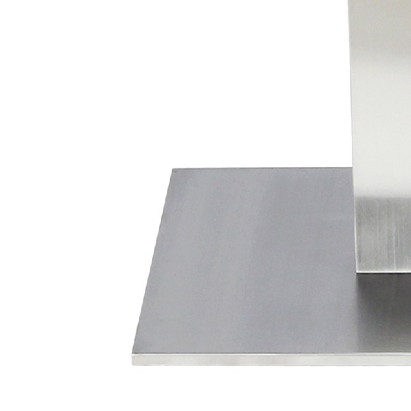 Ce piètement de table haute est fabriqué en inox brossé avec une base rectangulaire pour 4 personnes.