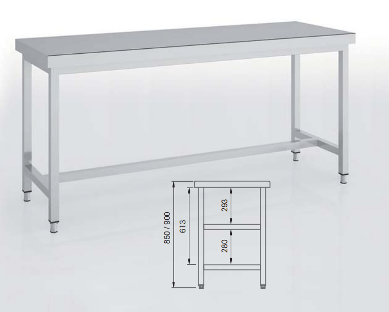 Elle dispose de piétements tube de 40x40mm avec hauteur réglable de 850 à 950mm.