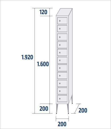 11 casiers superposés- Serrure à clé - Profondeur : 200 mm