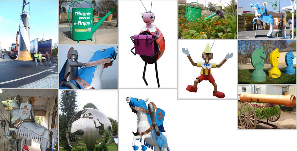 - Nous fabriquons dans nos ateliers une multitude de sujets et de personnages qui s’intègrent parfaitement aux jardins des villes, aux parcs, ronds-points et hall d’entrée.