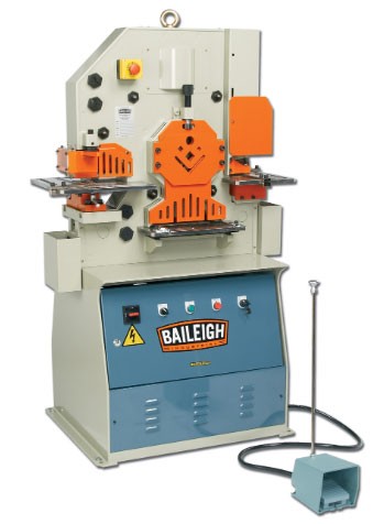 La poinçonneuse cisaille universelle à 5 postes hydrauliques fait partie des machines-outils d'une grande robustesse en acier mécano-soudé et conçues pour le poinçonnage, cisaillage ou grugeage de tôle, barres pleines, cornières et autres profilés.