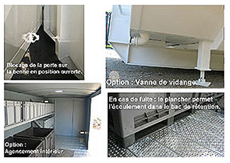 - Bac de rétention : en cas de fuite les liquides sont récupérés dans un bac étanche compartimenté.