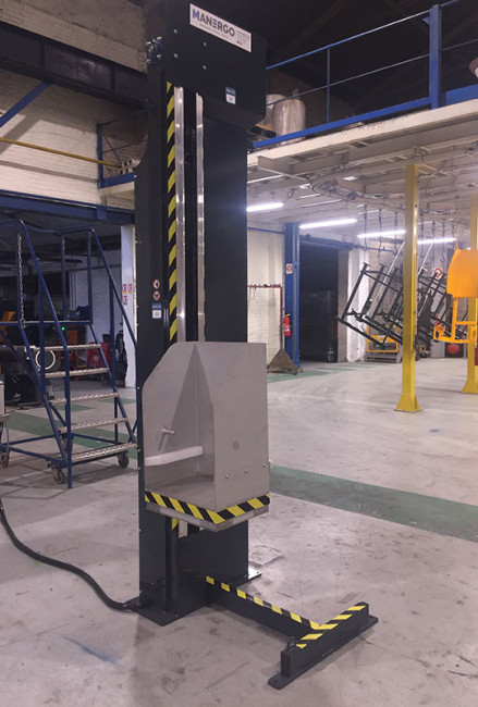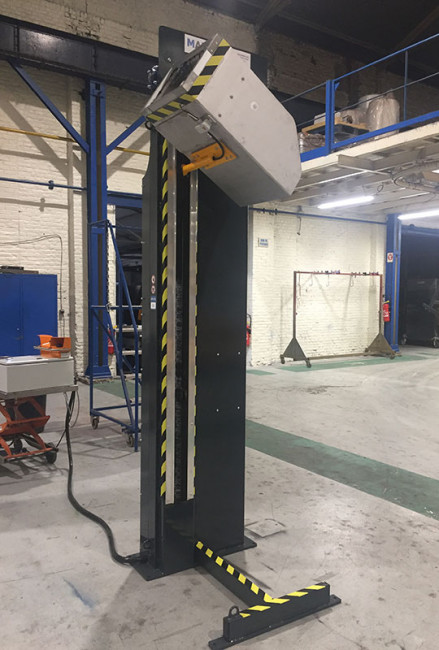 Le mât élévation rotation avec support inox est spécialement conçu pour la vidange de caisses contenant des produits agroalimentaires.