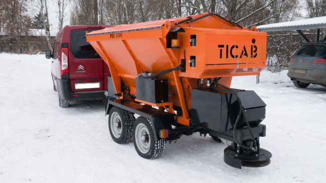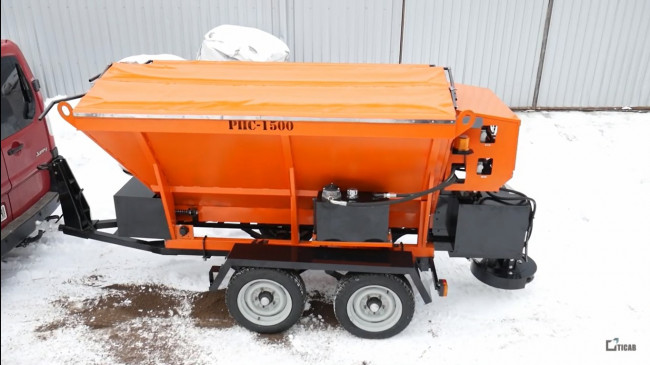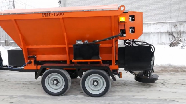 Ce distributeur de sable et de sel est conçu pour l’exécution des travaux à grande échelle de traitement des routes par des agents de dégivrage.