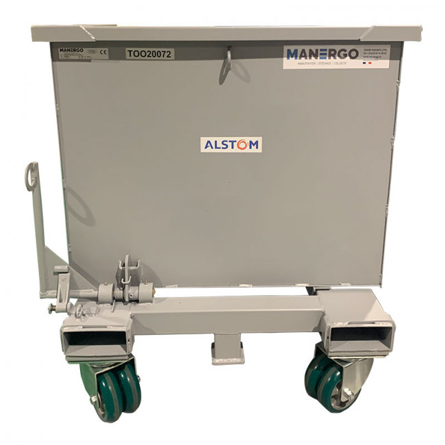 Cette benne auto-basculante de 500 litres est conçue pour faciliter la collecte, le transport et le vidage des déchets en atelier ou sur site industriel