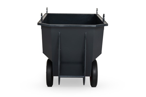 indispensable sur vos chantiers, elle possède une capacité de 400 litres, un système de basculement intégré, des anneaux de levage en acier soudé ultra solides et des roues en caoutchouc pleines.