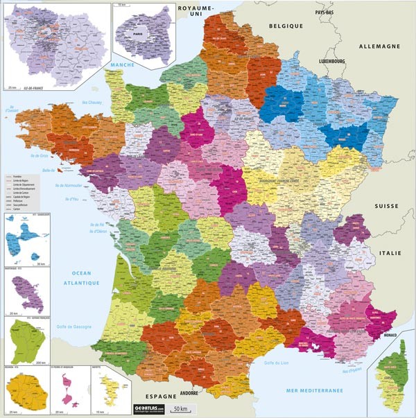 Cette carte murale de France administrative est conçue pour mieux connaître le pays où l'on vit.