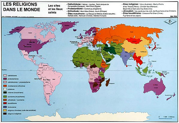 Cette carte du monde décrit plusieurs aspects naturels, sociaux, religieux ...etc.
