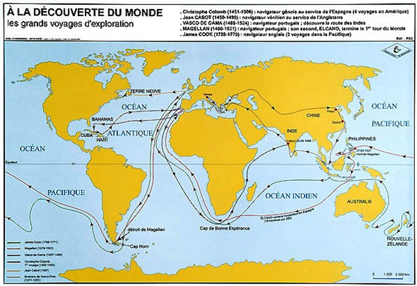 - Les grands voyages d’exploration (Christophe Colomb, Jean Cabot, Vasco de Gamma, Magelan, James Cook)