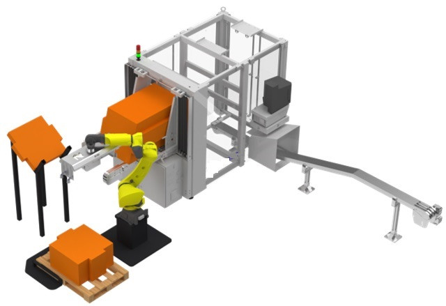 Équipée d’un robot industriel à haute cadence, notre solution saisit les produits avec précision.