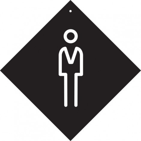 Pancarte à ventouse WC Homme en PVC expansé 3mm noir avec ventouse Ø 40 mm à crochet pour fixation.