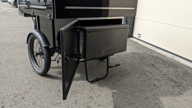 Equipé d'un espace de cuisson, de stockage, et de vente de produits alimentaires, nous avons conçu notre triporteur cuisine mobile pour les chefs et les restaurateurs souhaitant proposer des plats préparés directement sur place pour les clients.