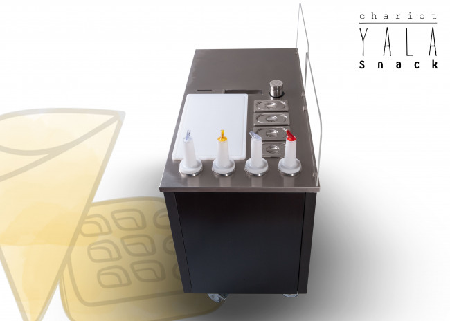 Un chariot ambulant cuisine snack conçu pour les professionnels du monde de la restauration. Avec le chariot mobile inox Yala Snack, distinguez vous et marquez la différence !