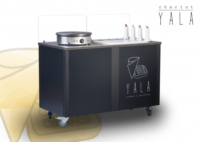 Un chariot crêpe ambulant professionnel spécialement conçu pour la fabrication et la vente de Crêpes & Gaufres, ultra design, pratique et passe-partout !
