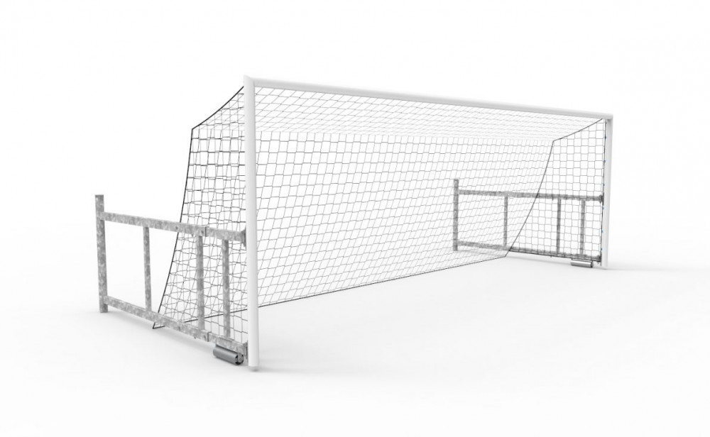 Le but de foot à 8 repliable Camp Nou 3 est équipé d’un système de pivotement sur bague polyamide au niveau de la cage arrière.