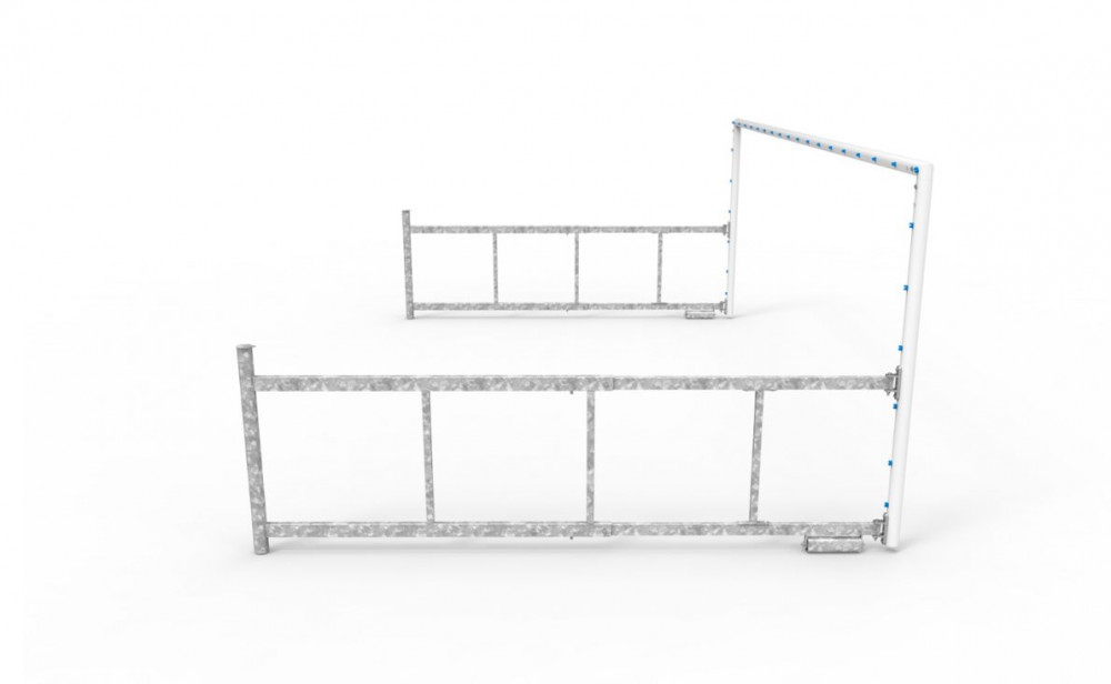 En France, la cage est réglée à une hauteur sous transversale de 2,10 m pour un entraxe de 6 m entre poteaux, tandis que la version Europe offre une hauteur de 2 m et un entraxe de 5 m pour couvrir les besoins des structures suivant la norme NF EN 748.
