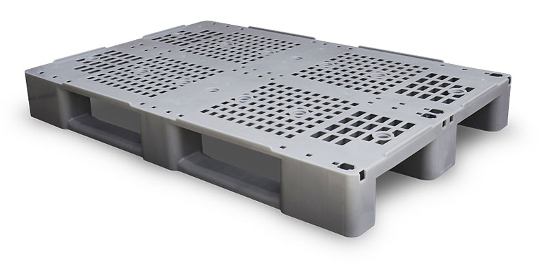 Notre palettes en plastique gris sur 3 semelles avec rebords anti-glissants seront idéales pour le transport au sol des charges allant jusqu’à 1000 Kg.
