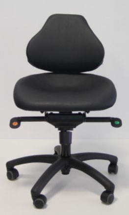 Il s'agit d'un siège assis debout ergonomique doté d'une assise basculante dynamique et d'une manette pour régler la hauteur du vérin.