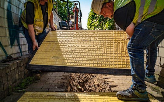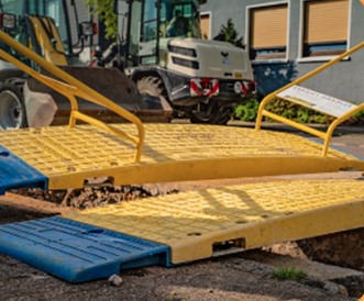 Combinées, ces plaques de franchissement de tranchées vous permettent de couvrir des tranchées jusqu’à 1200 mm de large et d’assurer la continuité du cheminement sur voirie, trottoirs ou zones de travaux.