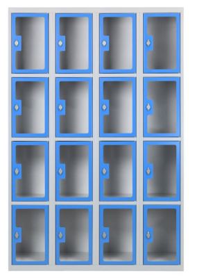 Vestiaire métallique portes transparentes grande visibilité – 4 cases - 1 à 3 colonnes - Tringle en pvc - L. 400 à 1200 x P. 500 x H. 1800 mm - Coloris au choix