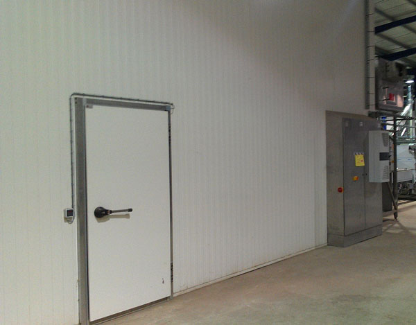 Une Chambre froide positif de 400 m2 / hauteur 8 m avec porte coulissante .