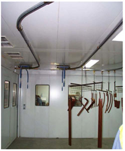-La société FIZZY (confiserie) avait un problème d’évacuation des cartons vides aux postes de travail à destination du compacteur : encombrement des postes de travail, déplacement des opérateurs ... CMAT a mis en place un convoyeur aérien, où chaque opérateur dépose ses cartons sur des balancelles qui sont automatiquement déchargées dans le compacteur par l’intermédiaire d’une goulotte et d’un bras pneumatique.