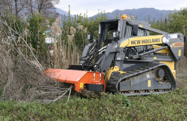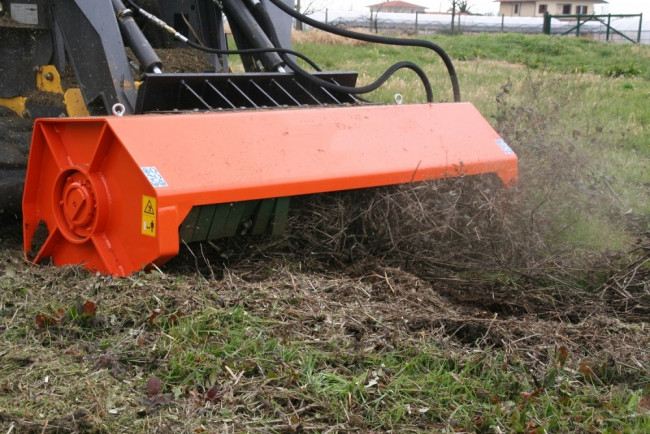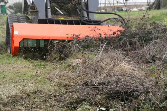 La débroussailleuse hydraulique pour chargeuse et skid steer est un robuste outil dédié à la coupe et au fauchage d'herbes hautes, broussailles, buissons de manière à obtenir une végétation esthétique.