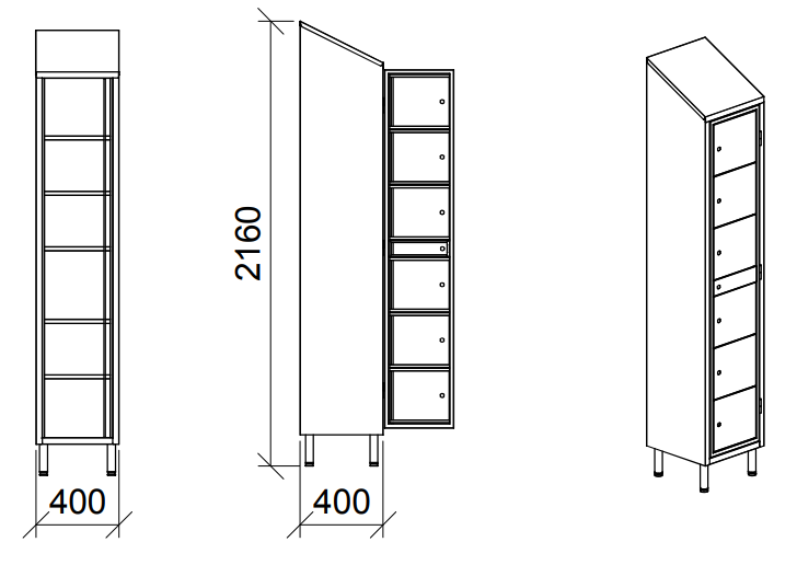 - Dimensions (L x P x H) : 400 x 400 x 2160 mm