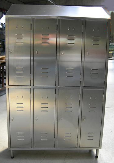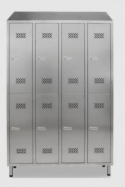 Notre armoire vestiaire en inox 8 portes est conçue pour l'industrie agroalimentaire, les laboratoires et les zones propres.