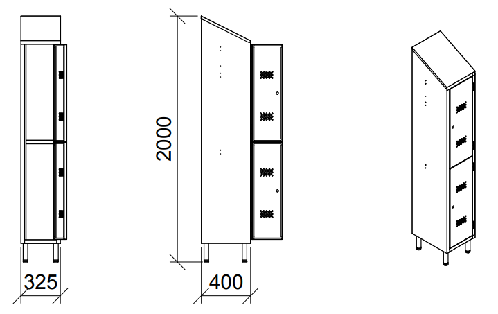 - Dimensions (L x P x H) : 325 x 400 x 2000 mm