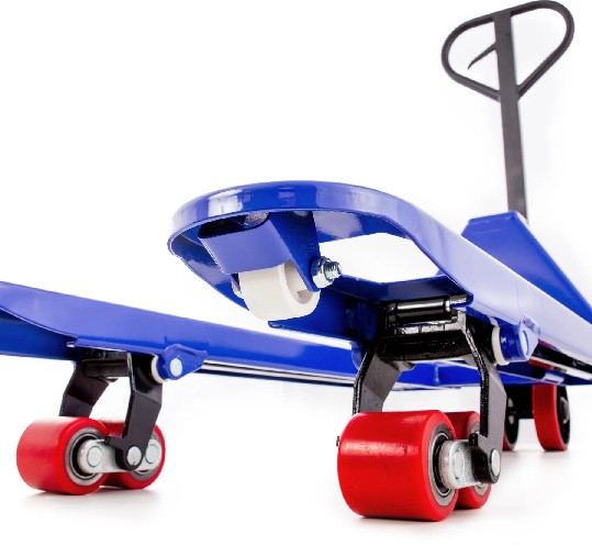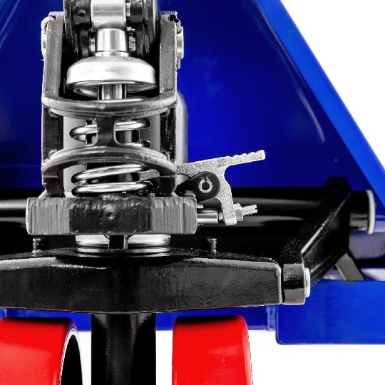 grâce à sa poignée en caoutchouc, la transpalette permet de déplacer facilement les charges, offrant une utilisation ergonomique et confortable pour l'utilisateur
