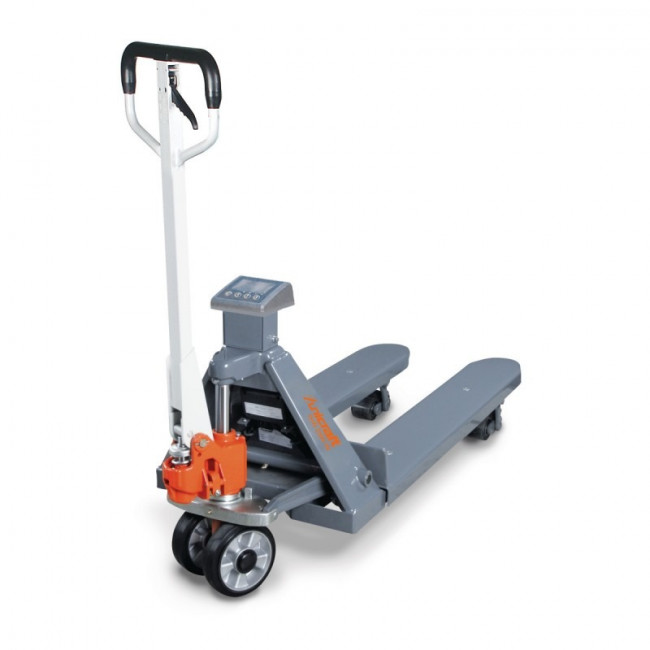 Ce transpalette manuel avec balance intégrée est un outil professionnel polyvalent conçu pour faciliter le déplacement de charges jusqu'à 2 tonnes.
