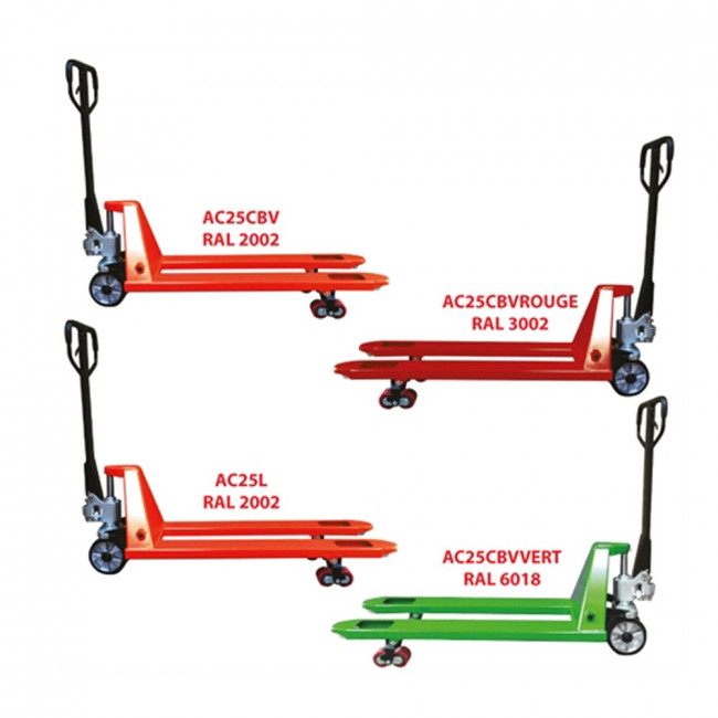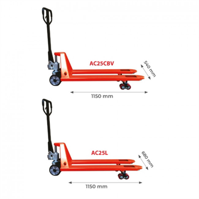 - Largeur de fourches 540 mm, sauf pour le modèle AC25L disponible en 685 mm