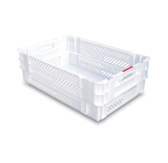 | Réf. TC :654496631 | Bac alimentaire en polyéthylène | Bac fond plein et parois 1/2 ajourées avec poignées passantes | 40 | 600 x 400 x 200 | Blanc | 2,175 | -